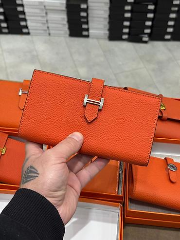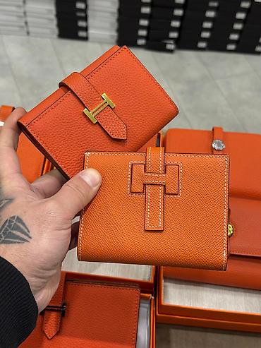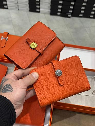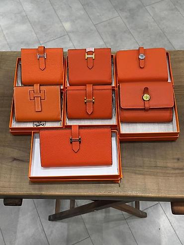 Yenidir hərbiri mağazada əldədir Narıncı rəngli dəri pulqabılar – müxtəlif ölçü və bağlama variantları