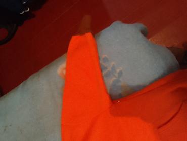 Sweatşört - Rəng: tünd göy əsas, üzərində ağ konturlu iri hərf printləri; hərflərin içində mavi-boz və narıncı kamuflyaj naxışları - Model: yarım-fermuarlı (1/4 zip) kapüşonlu - Brend etiketində: ...
