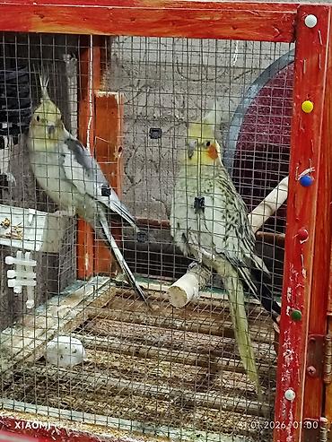 Nymph (cockatiel) və xonet quşları - Müxtəlif rənglər: sarı, ağ, boz və qarışıq tonlar - Sağlam, aktiv və səsli quşlar, sürü şəraitində saxlanılıb - Evdə bəslənməyə, əl öyrətməyə və cütləşdirməyə u...