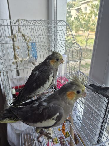 Nymph paraketləri (Cockatiel) – cütlük və qəfəs dəsti - Növ: Nymph paraket (Cockatiel) - Rənglər: - Krem/sarı lutinolu, yanaqlarda narıncı ləkələr, sarı toqqa - Boz (qrafit) klassik rəng, sar...