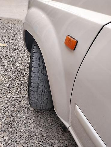 Nissan X-Trail (T30) SUV - Kuzov: 5 qapılı, boz/metallik rəng - Tam ölçülü krossover dizaynı, relslərlə dam, yan pilləkənlər - Ötürücü: 4x4 (ALL MODE işarələri və X-TRAIL yan loqosu) - Təkərlər: 5...