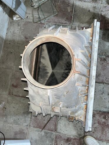 - Material: qalın tökmə cuqun metal/kütləvi polad gövdə, istilik bıçaqları (rebralar) ilə.