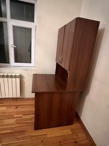 - Yuxarı hissədə 2 qapılı asma dolab, metal tutacaqlar