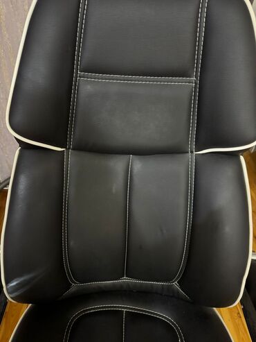 - Material: qara süni dəri oturacaq və bel hissəsi, ağ haşiyələr və dekorativ tikişlər