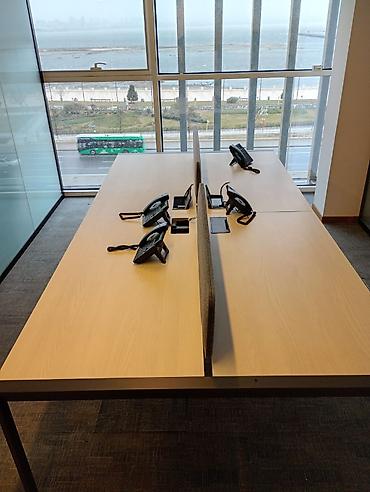 - 4 nəfərlik modul: iki paralel geniş stol, arada uzun arakəsmə.