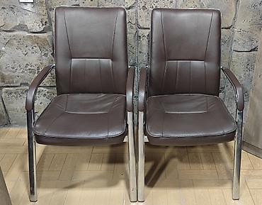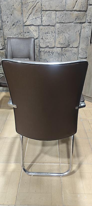 - Rəhbər kreslosu: tünd qəhvəyi rəng, yumşaq süni dəri örtük, almaz tikişli bel hissəsi, xrom rəngli metal qoltuqlar və ulduzayaqlı baza, fırlanan.