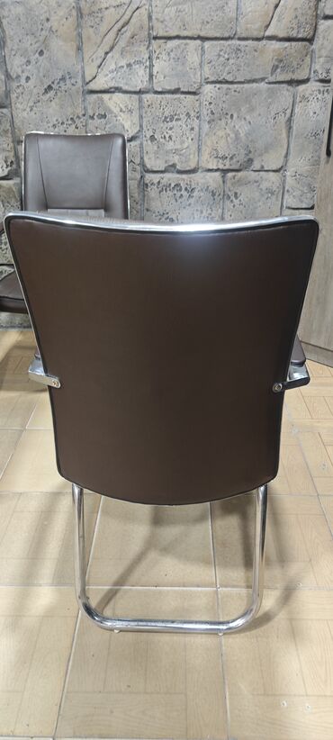 Ofis qonaq/kursu kreslosu - Rəng: tünd qəhvəyi - Material: yumşaq süni dəri üzlük - Oturacaq və bel hissəsi əlavə yastıqlama ilə rahat - Metal konstruksiya: parlaq xrom ayaqlar və qoltuqaltılar - ...