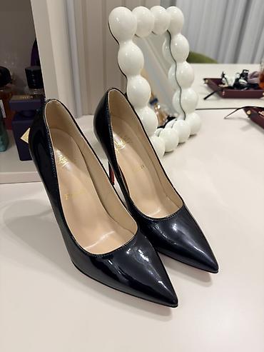 Qadın klassik tufli – qara rəng, dəriyəoxşar material - Model: sivri burunlu, “pumps” üslubu - Daban: nazik stilet, təxminən 6–7 sm - Rəng: mat qara - Ölçü: 40 (iç hissədə “39973D 40” qeyd olunub) ...