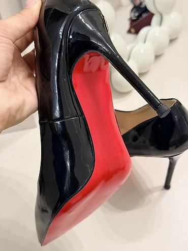 Qadın ayaqqabısı – qırmızı laklı hündürdaban 1-2 Dəfə Ad Gününə geyinilib - Model: klassik “pump” üslubu - Rəng: parlaq qırmızı üst, qara daban və altlıq - Material: laklı (parıldayan) üst, daxili...