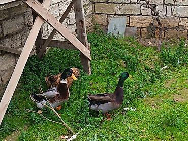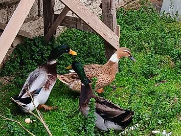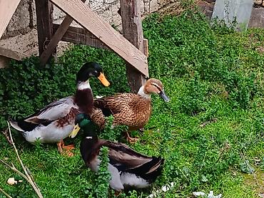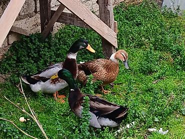 - Cins tipi: yerli qarışıq yumurtacı/ətlik xətt (şəkildə yaşıl parlaq başlı drake-lər və ləkəli-qəhvəyi dişi görünür).