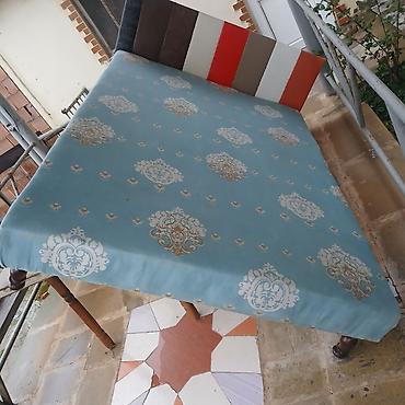 - Klassik dizaynlı, ağ-qızılı ornamentli mavi parça üzlü