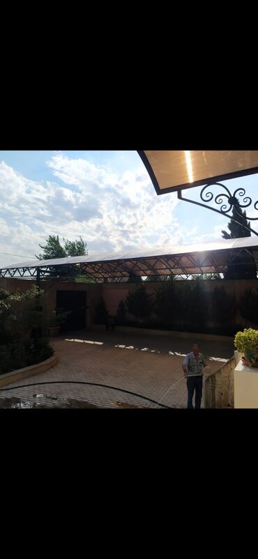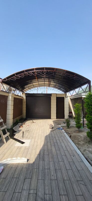 Müxtəlif dizaynda hazırlanmış bu metal konstruksiyalı örtüklər avtomobil dayanacaqları, həyət sahələri və ya digər açıq məkanlar üçün idealdır. Konstruksiyalar möhkəm metal profillərdən hazırlanıb və dayanıqlılığı təmin edir. Dam örtüyü olaraq şəffaf və ya yarı-şəffaf materialdan istifadə olunur ki, bu da günəş işığının keçməsinə imkan verir. Bəzi modellərdə bəzəkli dəmir elementlər də mövcuddur ki, bu da estetik görünüşü artırır. Həm funksional, həm də dekorativ məqsədlər üçün istifadə edilə bilər.