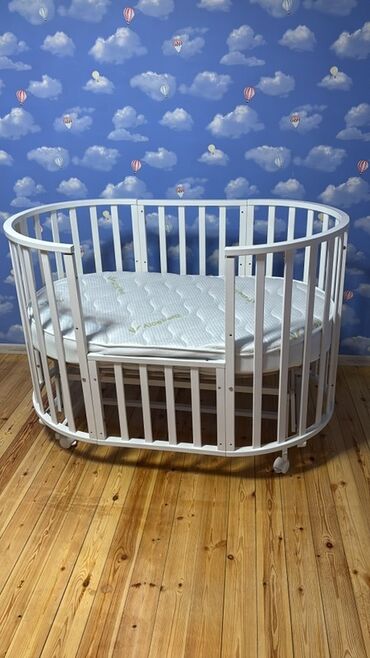 Oval formalı uşaq beşiyi və döşək dəsti