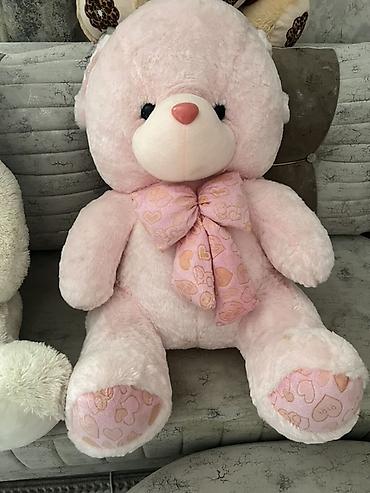 - Çəhrayı ayı: boynunda qəlbli naxışlı böyük lent, pəncələrində eyni naxış. Yumşaq, qucaqlamalı plyuş material.