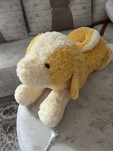 - Elektrikli istilənən it balası şəkilli plyuş yastıq/oyuncaq: yumşaq krem–sarı rəng, 220V şnurla qoşulur (şnur şəkillərdə var). Uşaqlar və böyüklər üçün rahatlanma yastığı kimi uyğundur.