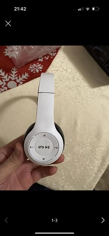 Ağ rəngli over-ear Bluetooth qulaqcıq - Simsiz Bluetooth bağlantısı ilə telefon, planşet və noutbuklara qoşulur - Qulaqlığın üzərində idarəetmə düymələri: səs artım/azaltma, trek dəyişmə, pauza/pl...