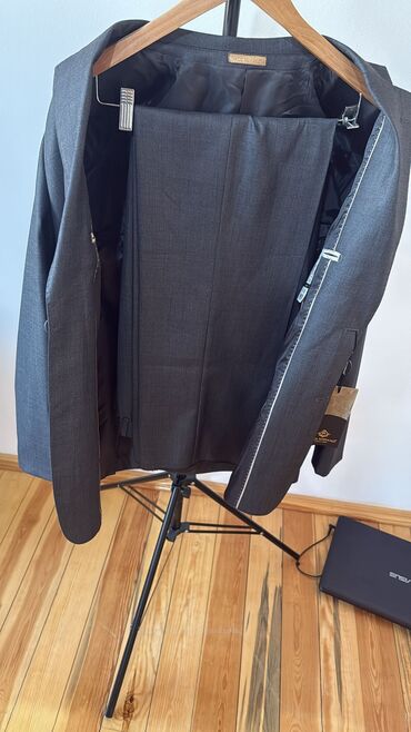 - Düzgün kəsim: klassik ikipilləli pencək və uyğun şalvar
