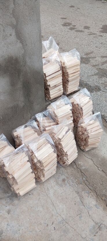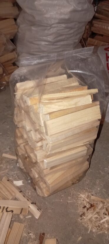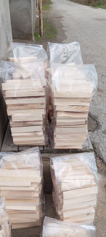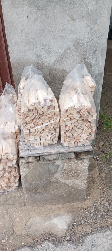 - Məhsul: xırda kəsilmiş odun parçaları, ocaq yandırmaq və manqal/soba üçün alışqanlıq materialı