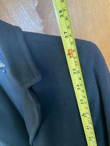 Qadın palto - Rəng: qara - Üslub: düz kəsimli, dizə yaxın uzunluq - Bağlanma: metal rəngli fermuar (tam ön hissə boyunca) - Parça: isti, qalın toxuma; iç hissə tam astarlı - Qol: 3/4 uzunluqda - B...