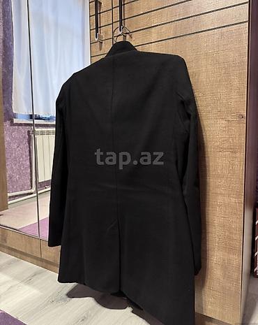 Kişi palto – M razmer - Rəng: qara - Kəsim: minimalistik, iki düyməli ön bağlama - Yaxa: geniş, klassik dizayn - Ciblər: yanlarda iki dərin cib - Uzunluq: bud səviyyəsindən bir qədər aşağı...