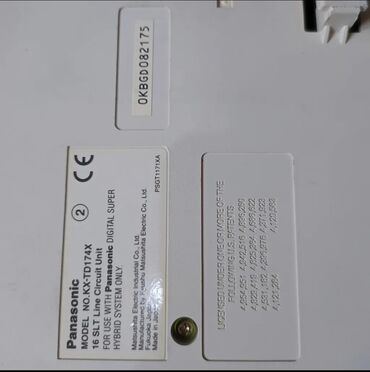 Etiketlərdəki seriya və patent məlumatları şəkillərdə göstərilib. Teknik detal axtaranlar üçün model üzərində “16 SLC Line Circuit Unit for use in Panasonic Digital Super Hybrid System only” qeyd olunub.