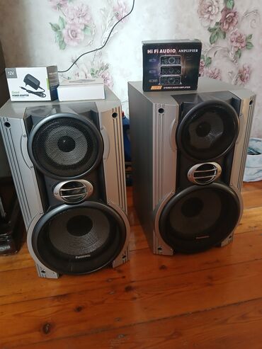 - 2 ədəd Panasonic döşəmə tipli akustik sütun (ikili woofer və yüksək tezlikli tweeter quruluşu, ön metal qəfəs, bass-refleks portları). Hər sütunda iri aşağı tezlikli dinamik və orta/yüksək tezlik üçün ayrıca sürücülər mövcuddur.