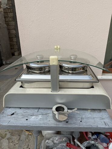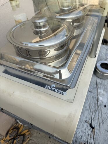 Kafe və restoranda xörəkləri isti saxlamaq üçün vitrin stelajı . qabları var