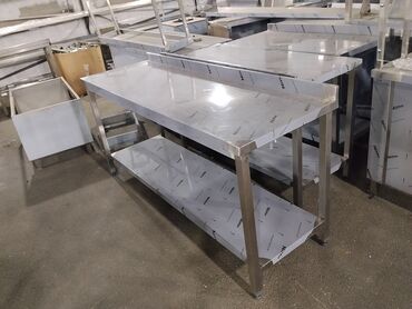 Peşəkar mətbəx üçün paslanmayan poladdan hazırlanmış avadanlıqlar. Təsvir: - Paslanmayan polad iş masaları: üst səth hamar və gigiyenik, kənarları bərkidilmiş; aşağıda əlavə rəf saxlanma üçün. Sür...