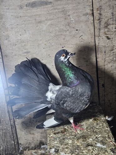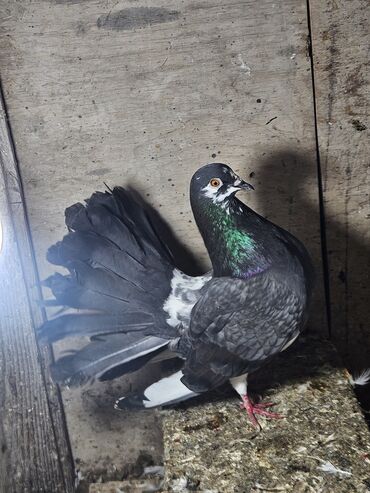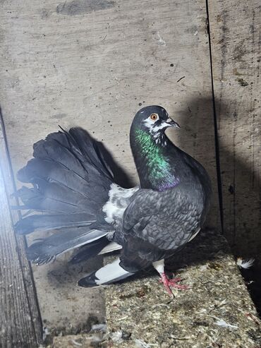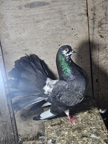 Qara-ağ ləkəli dekorativ göyərçin - Rəng: baş və boyun hissəsi tünd qara, bədən əsasən ağ, qanadlarda qara zolaqlar və xallı naxışlar - Quyruq: ağ, geniş lələklərlə - Ayaqlar: tüklü (paçalı), gücl...