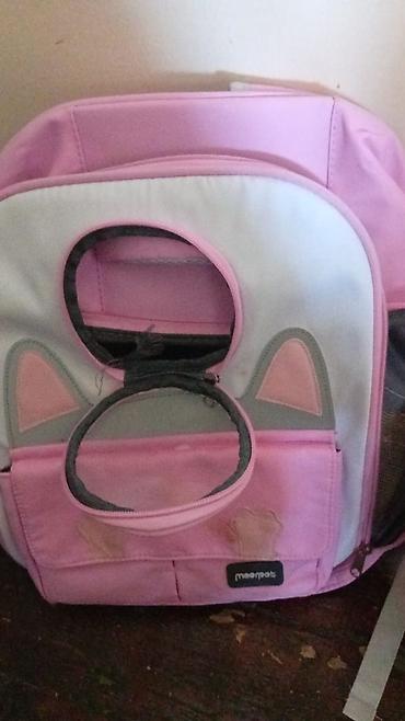 - Meynpets markalı çəhrayı daşıma çantası/ryukzak (ön hissədə dairəvi pəncərəli).