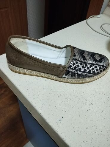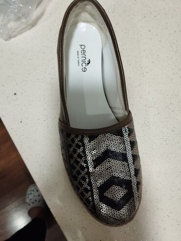 Brend: APAS Model: Qalın altlıqlı loafer Rəng: Açıq bej/krem Material: Parlaq effektli süni dəri üstlük, yumşaq içlik Detallar: - Üzərində qızılı rəngdə at dəmiri formalı metal aksesuar - Qalın, re...