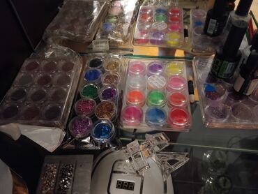 - Akril və gel sistemləri üçün pudralar, kütlələr, builder gel bankaları