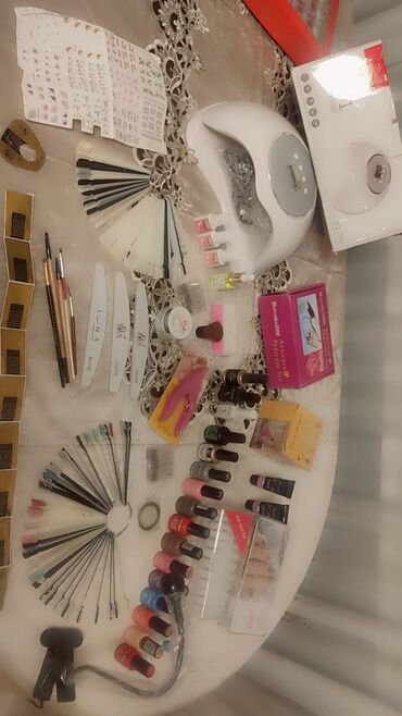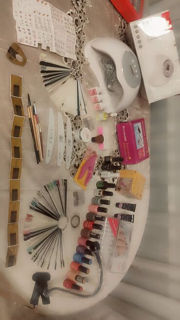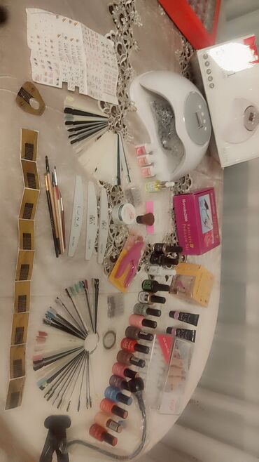 - Geniş rəng palitrasında gel laklar: Terio, Miss Piu, Spa və s. (qırmızı, çəhrayı, narıncı, mavi, bənövşəyi, nude və s.)