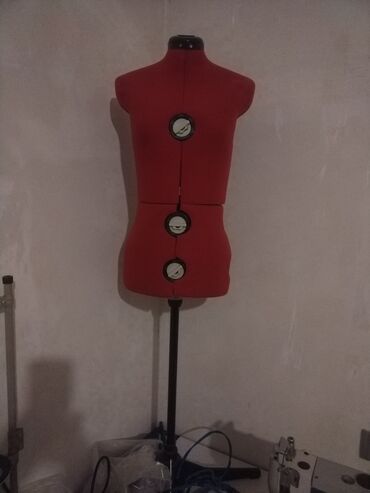 - Qırmızı rəngli tənzimlənə bilən dərzi mankeni (bədən ölçülərini tənzimləmək üçün ön hissədə çevirmə düymələri, boyun hissəsi və hündürlüyü dayaqla tənzimlənir). Tikiş, modelçilik və ölçü yoxlamaları üçün uyğundur.