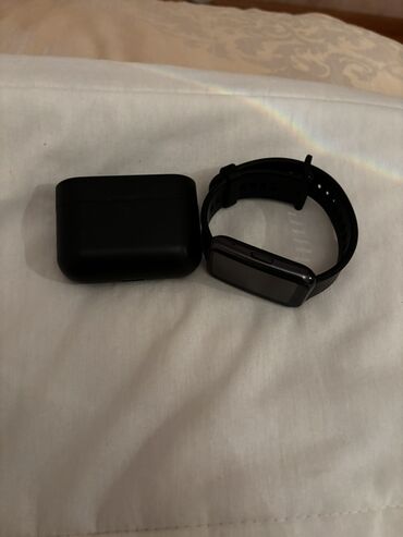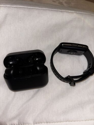 - Ağıllı saat: Dördbucaqlı, tam ekranlı, qara korpus və silikon kəmər.