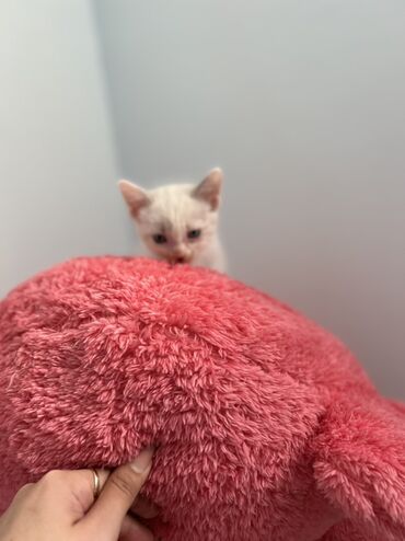 Ağ-krem rəngli, mavi gözlü balaca pişik balaları. Yumuşaq, qısa tüklü, incə quruluşlu və aktivdirlər. Qulaqları dik, quyruqları tünd-boz uclu tonlara keçir. Şəkillərdə oyuncağa həvəslə dırmaşmaları və qucaq sevmələri görünür. Evinə tez uyğunlaşan, oyunsevər və mehriban xasiyyətlidirlər. Şirin çəhrayı pəncə yastıqları, səliqəli bığcıqları və balaca burunları ilə çox cazibədardırlar. Uşaqlarla və yumşaq oyuncaqlarla oynamağı xoşlayırlar, sakit guşədə dincəlməyi də sevirlər. İçəri mühitdə saxlanmağa uyğundur, təmiz qəfəs/çantada rahat daşına bilir. Yeni ailəsinə sevgi və canlılıq qatacaq mehriban dost axtaranlar üçün ideal balalardır.