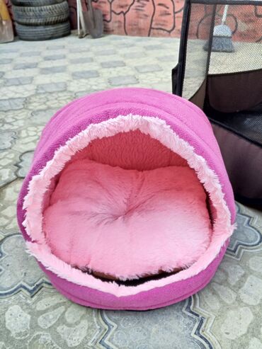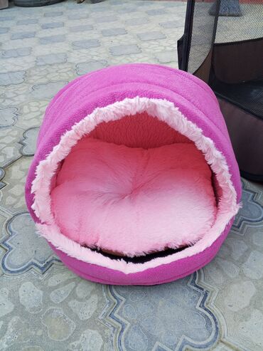 - Yumşaq “iglu” tipli pişik evi: çəhrayı rəngdə, içi tüklü və isti, çıxarıla bilən yastığı var. Balaca cinslər və bala pişiklər üçün komfortlu gizlənmə və yatma yeri.