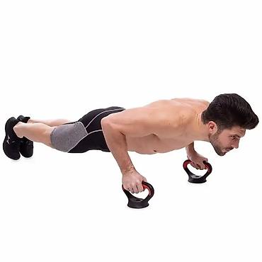 - Kettlebell tutacağı həm də şıns dəstəyı kimi istifadə oluna bilər, biləklərə düşən yükü azaldır və daha dərin amplituda təmin edir.