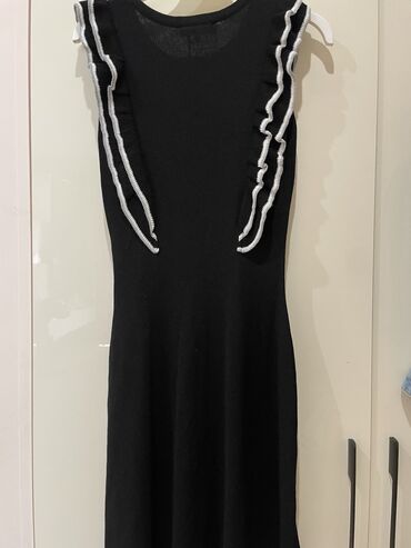 Qırmızı qadın geyimi – volan detallı kokteyl donu - Rəng: parlaq qırmızı - Model: V-yaxa, ön hissədə uzanan kaskad volanlar - Qol: uzun, geniş ətəkli-bell qollar (qatlı volan effektli) - Kəsim: be...