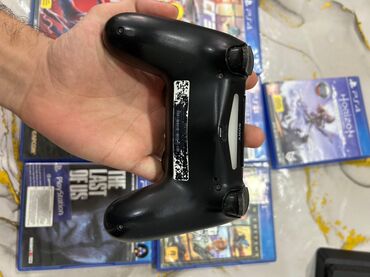 - Paketin tərkibi şəkillərdə görünən konsol və DualShock 4 idarəetmə pultudur; fon şəklində müxtəlif PS4 oyun qutuları görünür