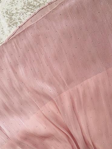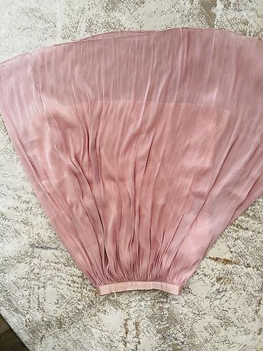 Zərif plise dizaynlı, açıq çəhrayı rəngli midi ətək. Yüngül parça axıcı görünüş verir, gündəlik və xüsusi günlər üçün uyğundur.