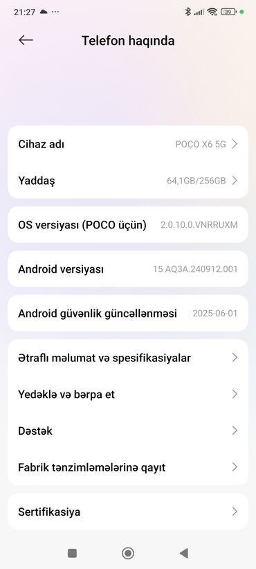 poco x5 5G ram 8 yadaş 256 işləməyi yaxşdi ciziqlari var barterde olar biraz zeyif model usdunde pul vermeyi şertile. telefonun islemeynde hecbir problem yoxdu ekrani deysilib birdefe