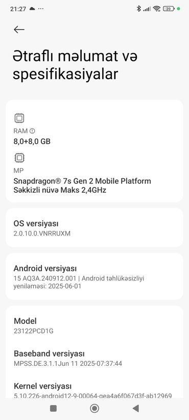 Salam teze veziyetdedir Yaddas 256GB Ram 8GB+8GB 5G versiyadir Cox guclu modeldir Mukemmel zayrtaka saxlayir Oyun oynayanlar ucun mukemmel secimdir Satilanda elani silecem Resmi zemanet 6 ay