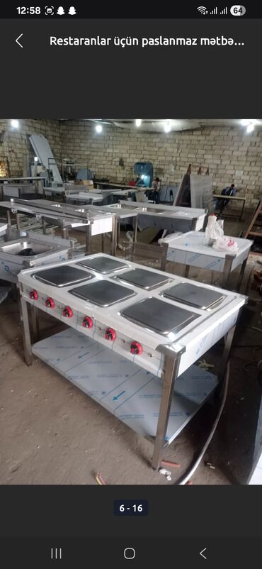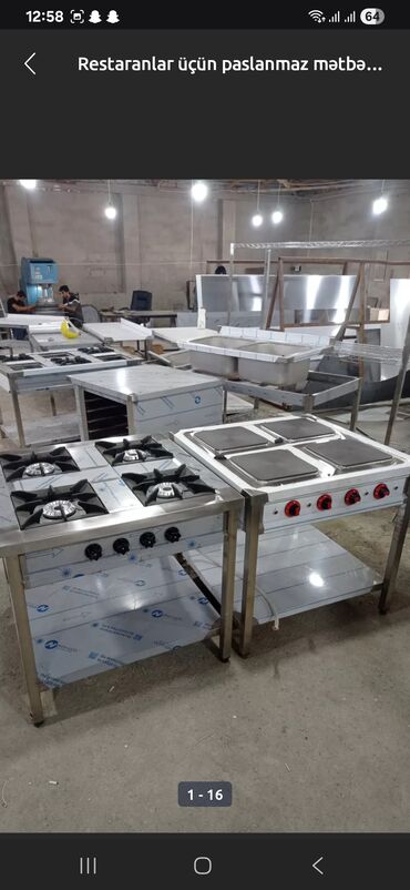 Bu paslanmayan poladdan hazırlanmış kommersiya mətbəx avadanlığı restoranlar, kafelər və digər iaşə müəssisələri üçün nəzərdə tutulmuşdur. Avadanlığa müxtəlif ölçülü və funksiyalı sobalar, induksiyalı plitələr və paslanmayan polad iş masaları daxildir. Sağlam və davamlı konstruksiyası sayəsində uzunmüddətli istifadə üçün uyğundur. Bu avadanlıqlar peşəkar mətbəxlərdə effektivliyi və gigiyenanı təmin etmək üçün əla seçimdir. Modulyar dizaynı mövcud mətbəx sahəsinə asanlıqla inteqrasiya olunmağa imkan verir. Yüksək temperaturda işləmək üçün uyğun olan bu avadanlıqlar, müxtəlif növ yeməklərin hazırlanması üçün geniş imkanlar təqdim edir.
