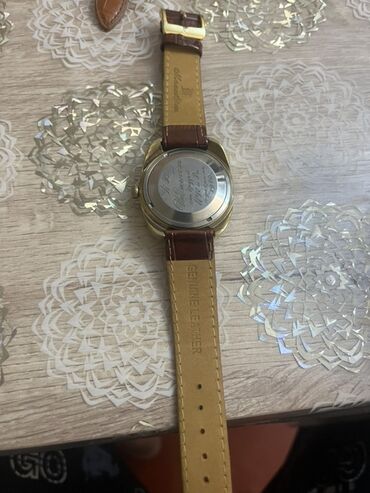 - Kahverengi timsah naxışlı, “Genuine Leather” (həqiqi dəridir) işarəli qayış və qızılı toka.