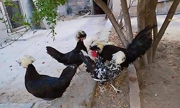 - Cins: Polish (taclı) – iri, ağ “tac” tükləri ilə seçilən dekorativ toyuqlar və xoruz