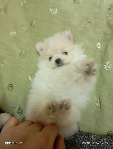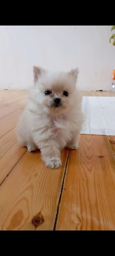 Pomeranian Spitz balası - Cins: Pomeranian (Spitz) - Rəng: Krem / açıq bej - Quruluş: Kompakt bədən, qalın ikiqat tüklü yun, qısa pəncələr, kiçik qulaqlar - Xarakter: mehriban, oynaq, ev şəraitinə...