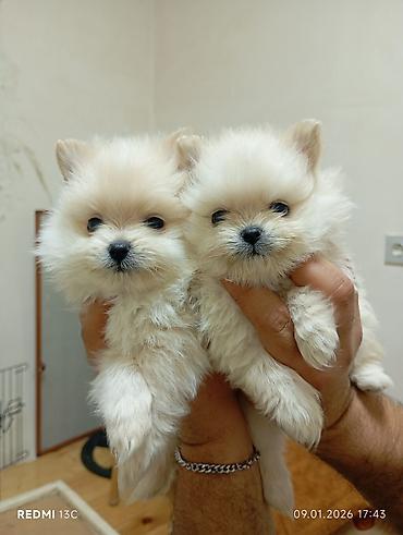 Cins: Pomeranian Spitz (Mini) Rəng: Krem/şampan Say: 2 bala (şirin ayı tipli feys, qısa pofuduq gövdə) Xüsusiyyətlər: - Kompakt ölçü, mənzil üçün uyğun - Canlı, oynaq və sosial temperament - Yumşa...