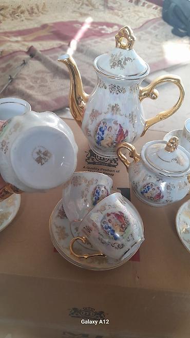 - Xüsusiyyətlər: parlaq şirə örtüyü, detallı qızıl bəzəklər, uyğunlaşdırılmış motivli fincan və sousniklər, rahat tutuş üçün ergonomik qulplar