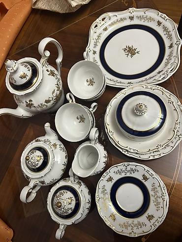Weimar kobalt çay dəsti (6 nəfərlik). Yeni vəziyyətdədir. İstehsal ili: 1977.